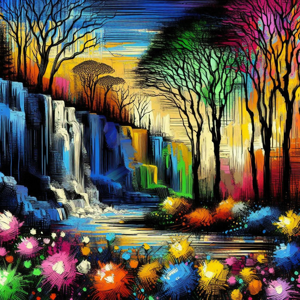 "In 'Ethereal Cascade,' I blend traditional artistry with modern digital techniques to create a surreal landscape that transcends reality. Inspired by the luminous works of Thomas Kinkade, this piece pushes the boundaries of color and light, inviting viewers to immerse themselves in a world of vibrant beauty and tranquility."