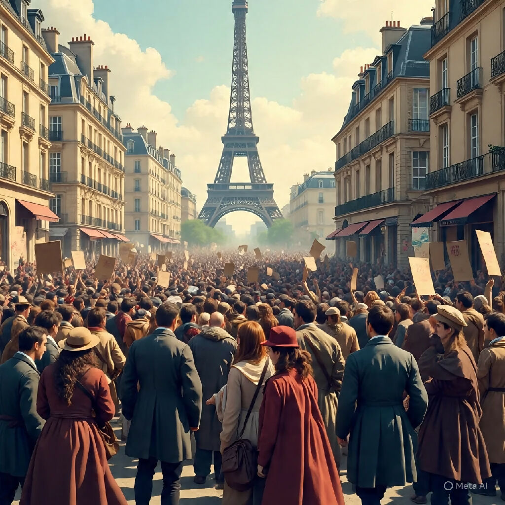 Paintings depicting French revolution and some significant art related to industrial revolution as well.