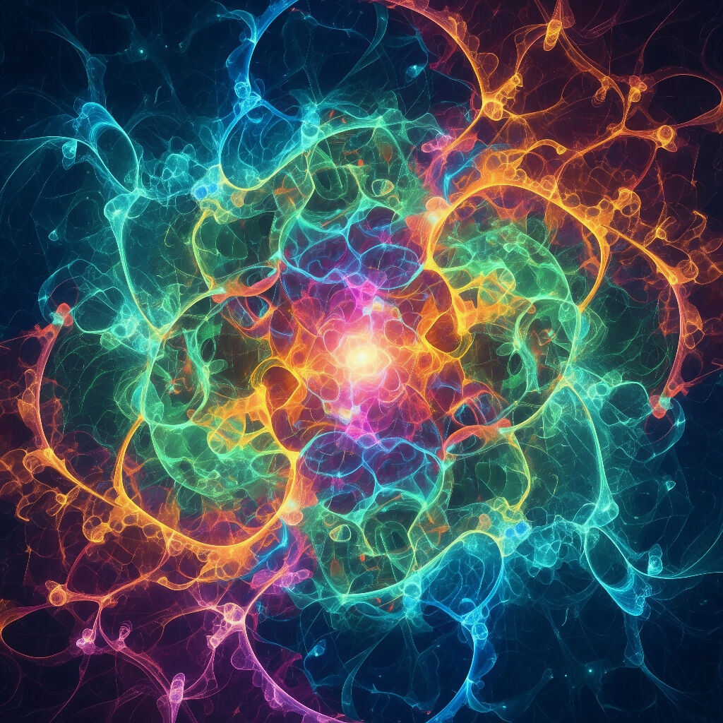 Dieses AI-generierte Kunstwerk zeigt eine Explosion leuchtender Farben und wirbelnder Linien. Es erinnert an eine dynamische Energiequelle oder ein komplexes neuronales Netz. Die fließenden Formen in Blau-, Grün-, Orange- und Pinktönen erzeugen eine faszinierende Tiefe und Bewegung, die als Darstellung von Energie interpretiert werden könnte.