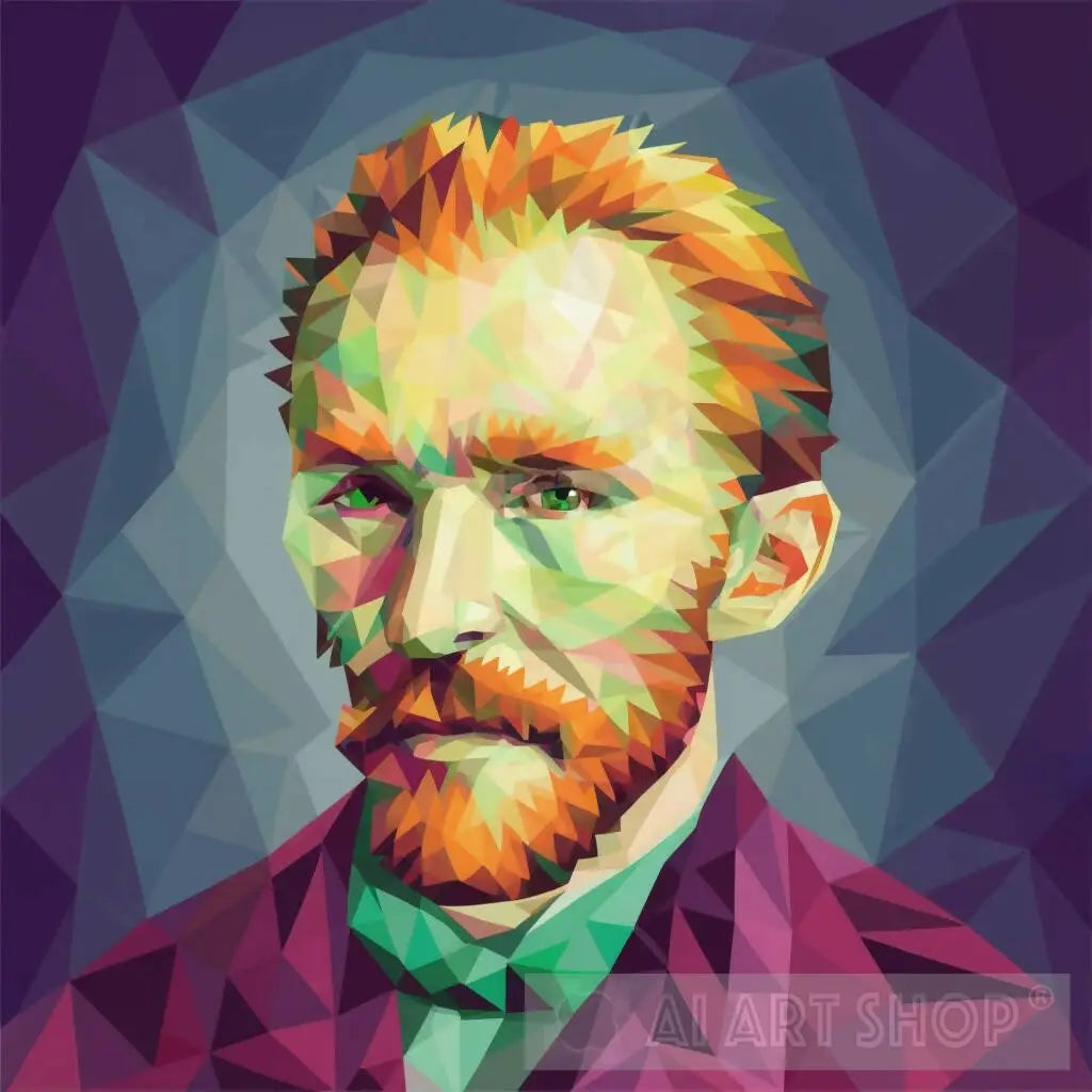 geometric polygonal psychedelic art, digital illustration of Face of artist Vincent Van Gogh ,cool ,vivid colors ,vector ,Colorful background, bright,3D environment, high resolution , poster, 3d render, typography, cinematic, illustrationv0.2