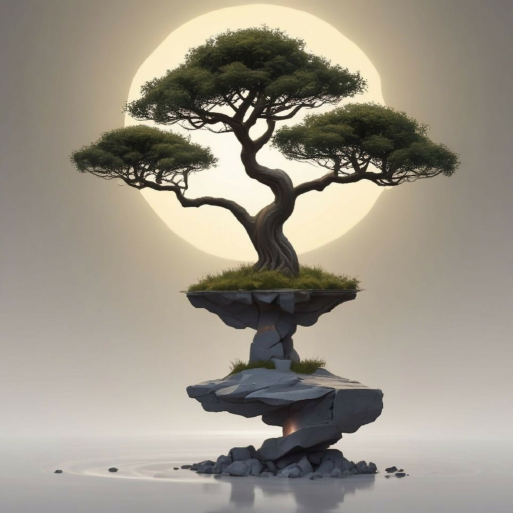 The entire illustration exudes a playful and dreamy atmosphere that transports the viewer to a magical world. It is an image that stimulates the imagination and celebrates the beauty of nature in a completely new, artistic form.