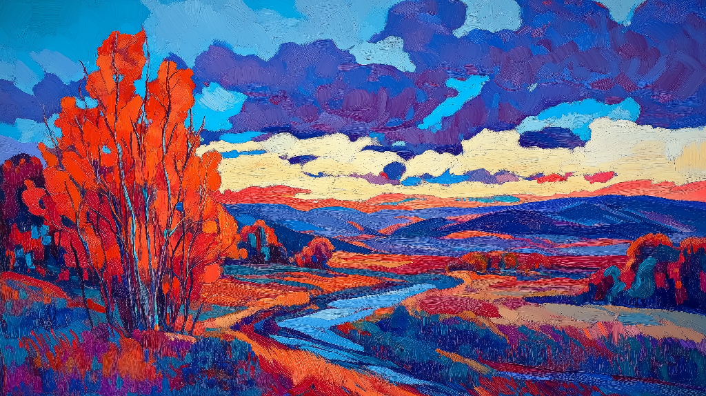 Step into a world of vibrant emotions and untamed beauty with “Fauvist Blaze” — a stunning AI-generated digital landscape inspired by Abstract Expressionism and Fauvism. This artwork boldly combines deep blues and fiery reds, creating a non-naturalistic color palette that radiates raw, expressive energy.