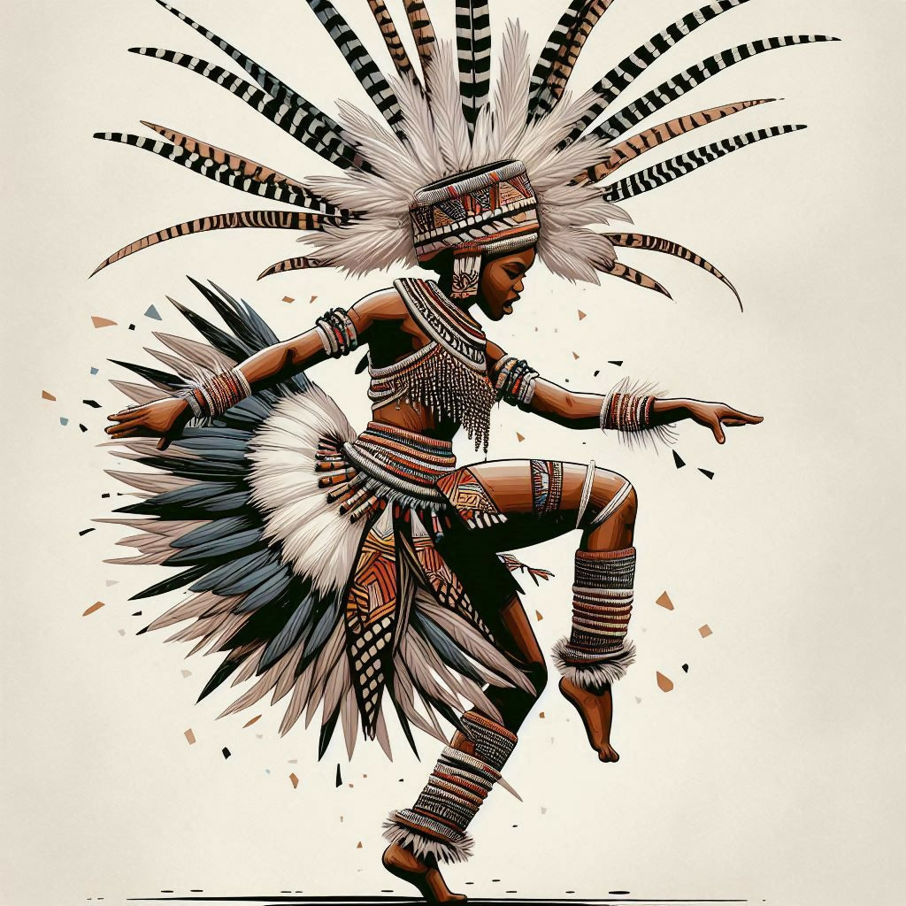 Celebrate the vibrant energy of African culture with this captivating portrait of a female Zulu dancer mid-performance. Gracefully adorned in traditional Zulu attire, complete with intricate beadwork and feathered embellishments, she embodies the elegance, strength, and spirit of her heritage. The dynamic movement captured in the artwork radiates rhythm and passion, bringing life and vibrancy to any space.