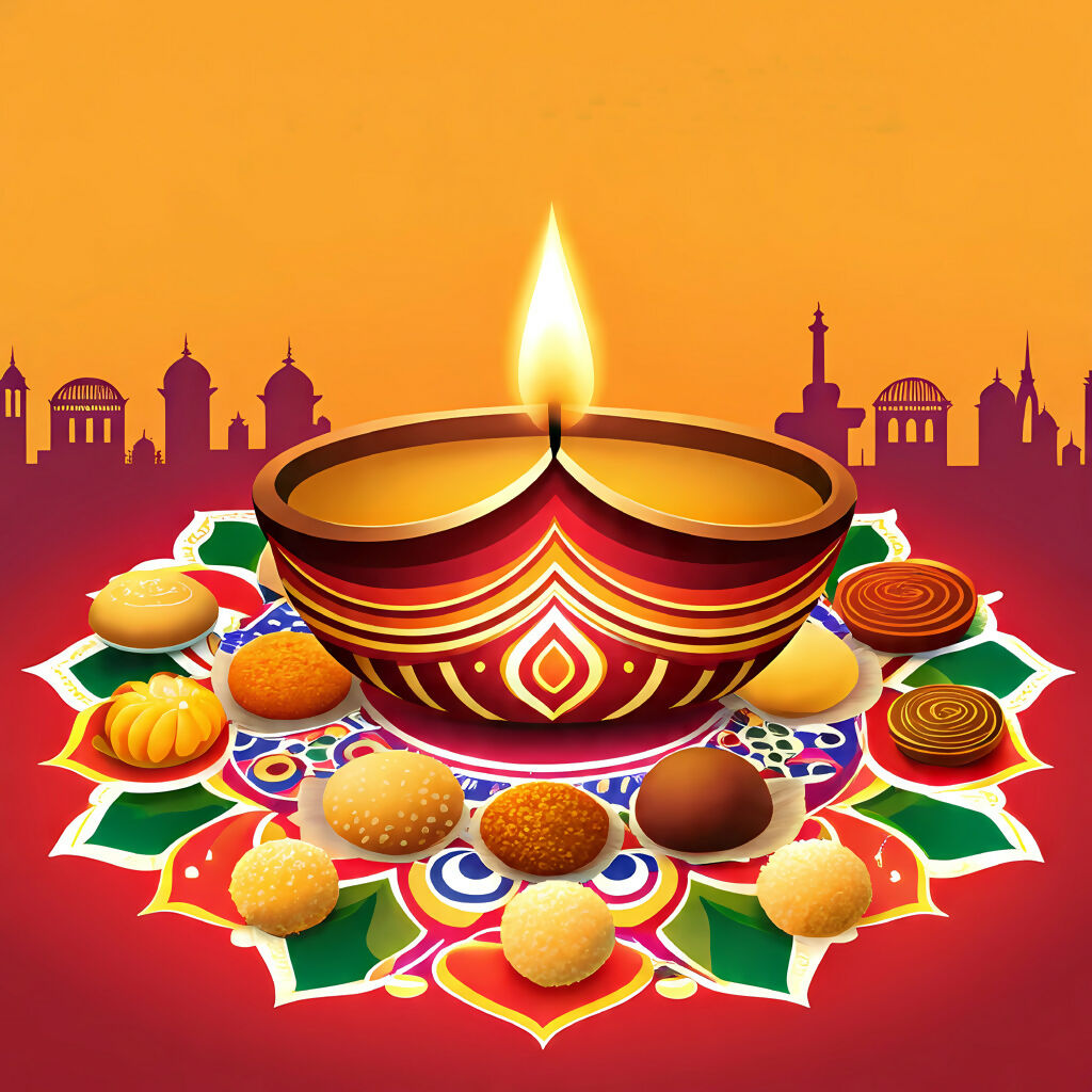 Celebrate the spirit of Diwali with this radiant AI-generated still life artwork. At its heart, a glowing diya illuminates a meticulously crafted rangoli, surrounded by traditional Indian sweets like laddus and barfis. This piece captures the warmth, joy, and cultural richness of India’s Festival of Lights. Inspired by the timeless tradition of decorating homes and sharing sweets with loved ones, this artwork evokes nostalgia and celebration in every pixel. Perfect for festive decor, cultural storytelling, or gifting during the holiday season.