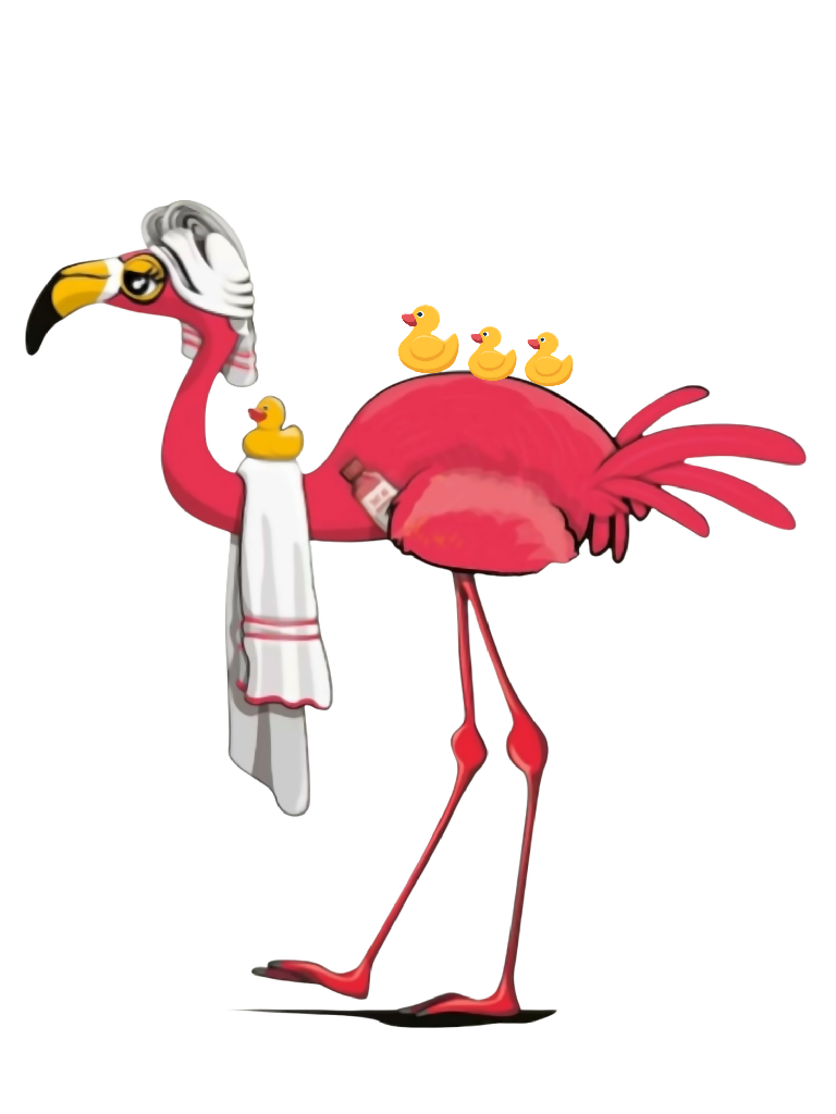 Brighten up your bathroom with this quirky and funny Flamingo in a Bathtub Digital Art! This unique digital download features a charming flamingo enjoying a relaxing spa day with its little rubber duck friends.