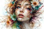 Floral Grace: A Portrait of Her" is a stunning AI-generated digital painting that merges striking realism with expressive floral abstraction. The woman’s face is rendered with delicate clarity—calm, confident, and beautifully framed by blooming petals that flow around her like emotion made visible.
