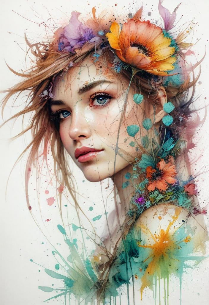 Floral Grace is a digitally enhanced AI-generated portrait that merges realistic human beauty with soft, dreamlike floral abstraction. The woman's face is rendered with stunning clarity and subtle emotion—delicate yet strong—while the surrounding floral elements bloom with texture and artistic depth.