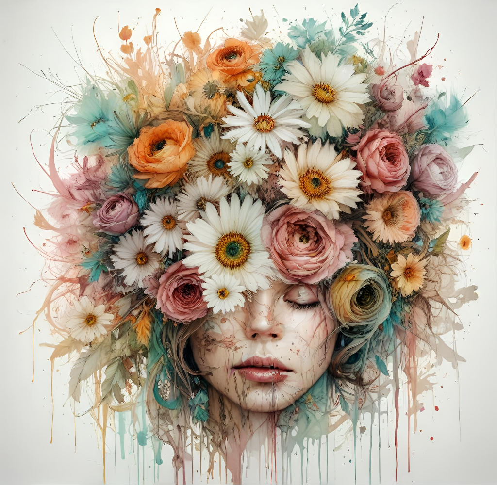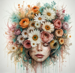 Floral Grace is a digitally enhanced AI-generated portrait that merges realistic human beauty with soft, dreamlike floral abstraction. The woman's face is rendered with stunning clarity and subtle emotion - delicate yet strong - while the surrounding floral elements bloom with texture and artistic depth.