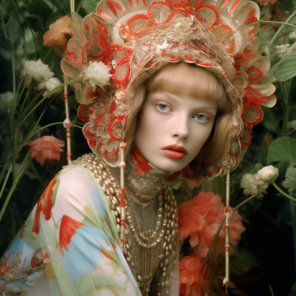Style: baroque, floral, surreal, ceremonial, fashion, romantic