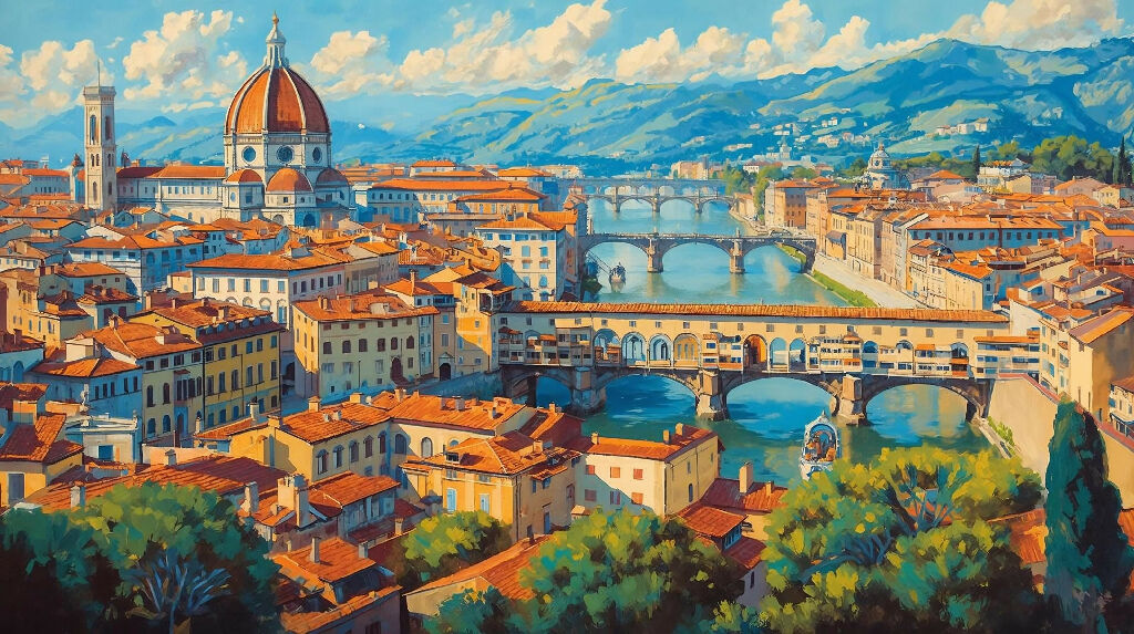 Another captivating painting of Florence with a different view capturing the beauty and the old-world charm.
