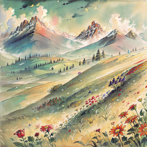 Flower Hill is a 100% original AI painting, created to be sold at the AI Art Shop.