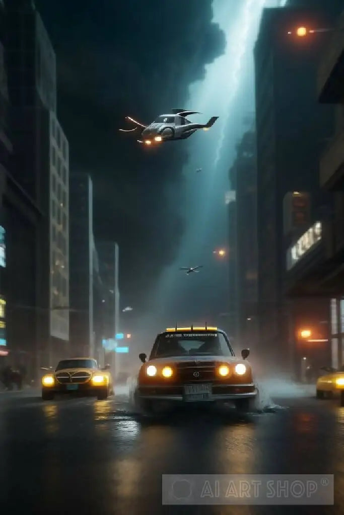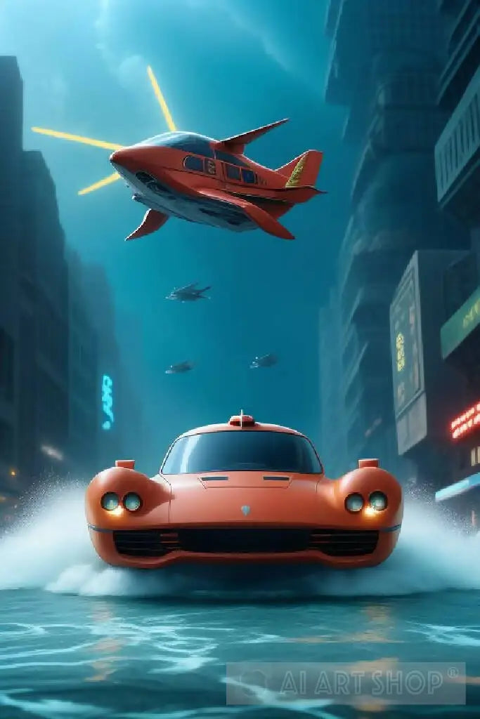 flying car chase through an underwater city