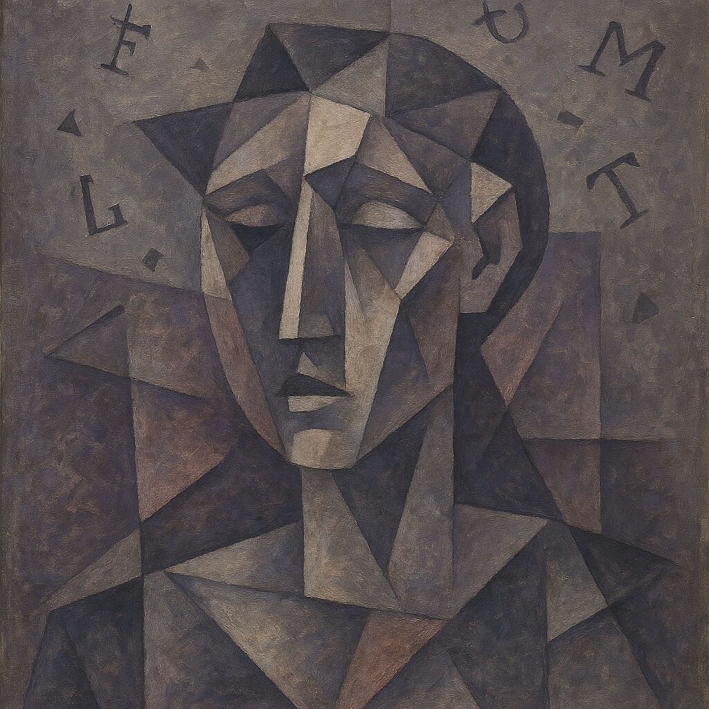 “Fragments of a Forgotten Voice” is a hauntingly poetic AI-generated artwork that channels the spirit of Picasso’s Cubist era. This emotionally rich piece features a disjointed, abstract human figure, partially fading into the background, surrounded by floating symbols and broken letters—a visual metaphor for lost communication, memory, and identity.