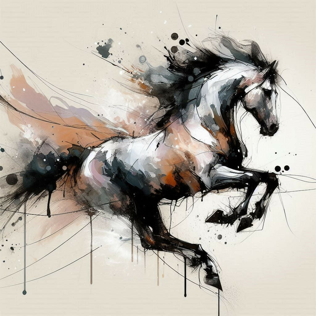 This creation feels like an authentic painting with rough brush strokes and dripping paint. Evokes a sense of freedom and energy. Great for a decor focal point. Neutral colors.