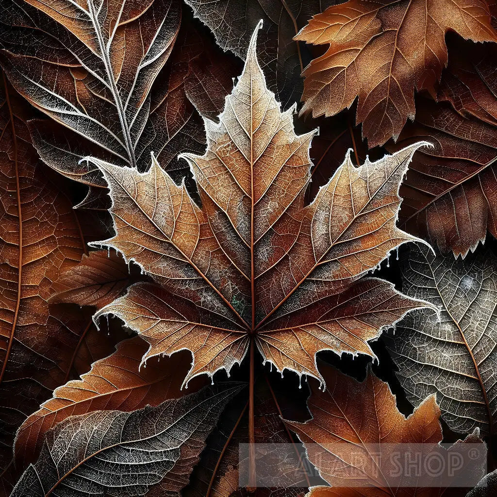 This enchanting wall painting captures the serene beauty of Frosty Leaves, depicting delicate foliage adorned with frost. The leaves shimmer with icy crystals, reflecting the soft light of winter. The cool tones of blue and white create a sense of tranquility and calmness, evoking the peacefulness of a winter morning. Each leaf is intricately detailed, showcasing the artist's skill and attention to nature's wonders. Perfect for adding a touch of seasonal charm to any space, this artwork invites viewers to immerse themselves in the magic of winter.
