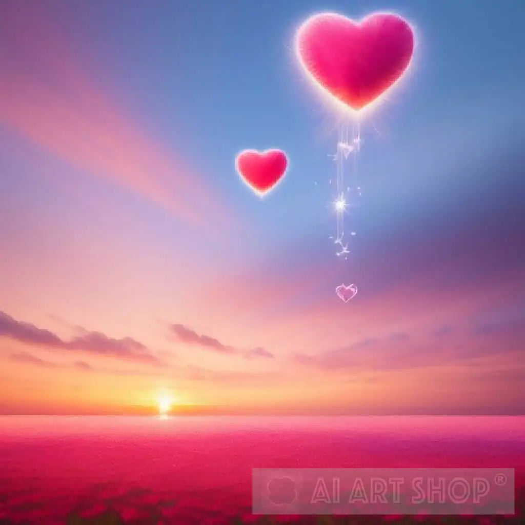 In this artistic scene, a fuchsia heart soars in a clear blue sky, intertwining with the sunlight and reflecting a touch of magic. The fuchsia heart plays a prominent role in this celestial space, appearing as if it's soaring towards the horizon, symbolizing love that penetrates the depths of the sky.