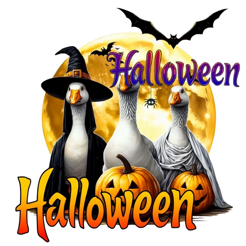 This instant digital download is perfect for crafters and small businesses creating unique Halloween apparel like T-shirts, mugs, and spooky party decor. Ideal for goose lovers and anyone looking for unique Halloween animal art or farm animal clipart. Use this funny goose trio for your fall festival products, trick-or-treat bags, or simply as a fun addition to your spooky season collection. File includes a transparent background and is ready for commercial use.