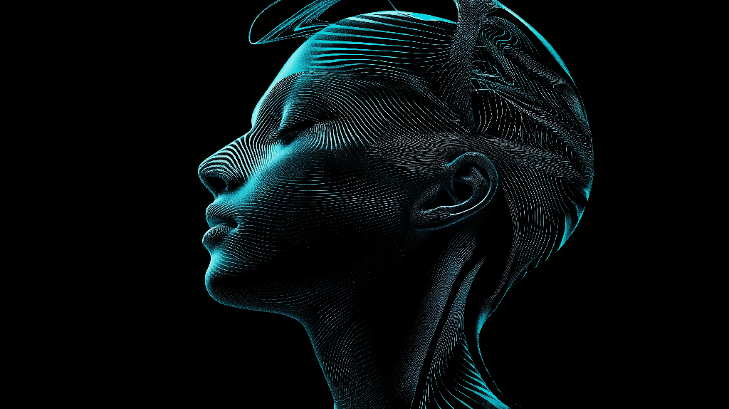 ✨ Digital Pulse: Luminous Form — a hypnotic composition of luminous lines mapping the contours of a serene AI-generated figure.