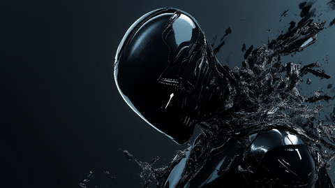 ✨ Voidborne: Dark Liquid Entity — a dark, reflective entity emerging from liquid chaos, representing digital transformation and power.