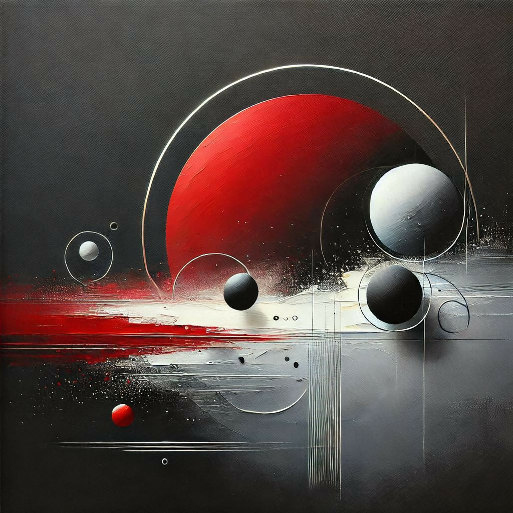 An impressive abstract painting that comes in an elegant silver red and black design. The combination of these two colors creates a powerful yet luxurious atmosphere.