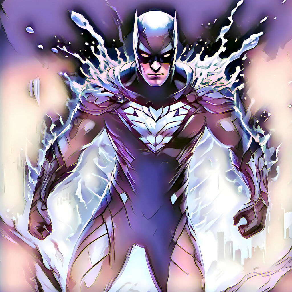 This AI-generated artwork showcases a powerful superhero in a sleek futuristic suit with glowing accents and sharp lines. The character is depicted in a dynamic pose surrounded by energy waves that add a sense of motion and intensity. The background features abstract swirling colors enhancing the action-packed vibe of the illustration. Designed with modern aesthetics this piece is perfect for fans of high-tech superheroes and digital artwork that embodies futuristic themes.