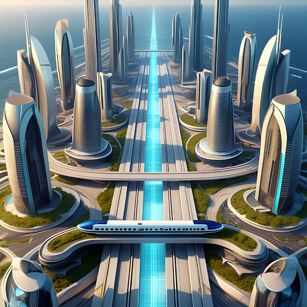 Step into the visionary future with Futuristic Urban Oasis, a striking AI-generated artwork that captures the harmony between advanced architectural design and cutting-edge transportation. This cityscape glows with luminous blue railways and sleek skyscrapers, where angular towers and organic curves redefine modernity. The centerpiece—a streamlined high-speed train—symbolizes progress and seamless mobility in a technologically evolved metropolis. Perfect for enthusiasts of architectural innovation, this artwork evokes the spirit of tomorrow’s city living. Ideal for prints, digital use, or collection curation, it inspires awe and forward-thinking imagination.