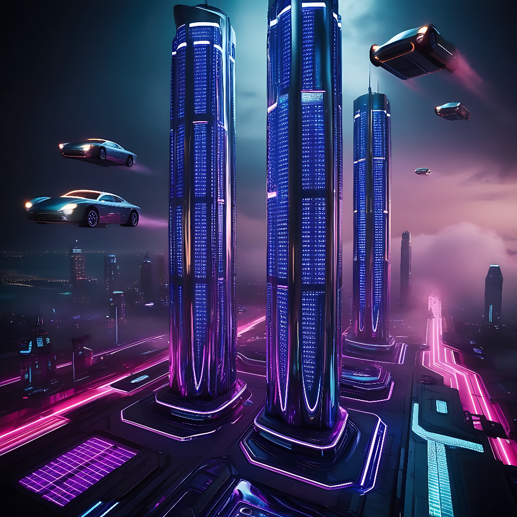 Futuristic Urban Skyline at Night