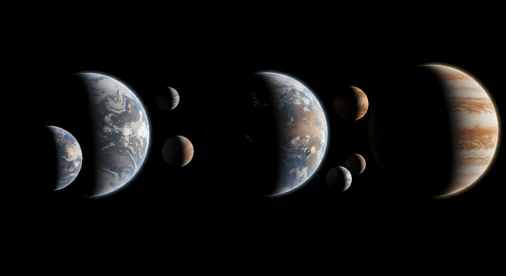 Capturing an array of planets showcasing their unique terrains and atmospheric conditions as they line up in a seemingly endless parade through the cosmos, creating a breathtaking celestial spectacle.