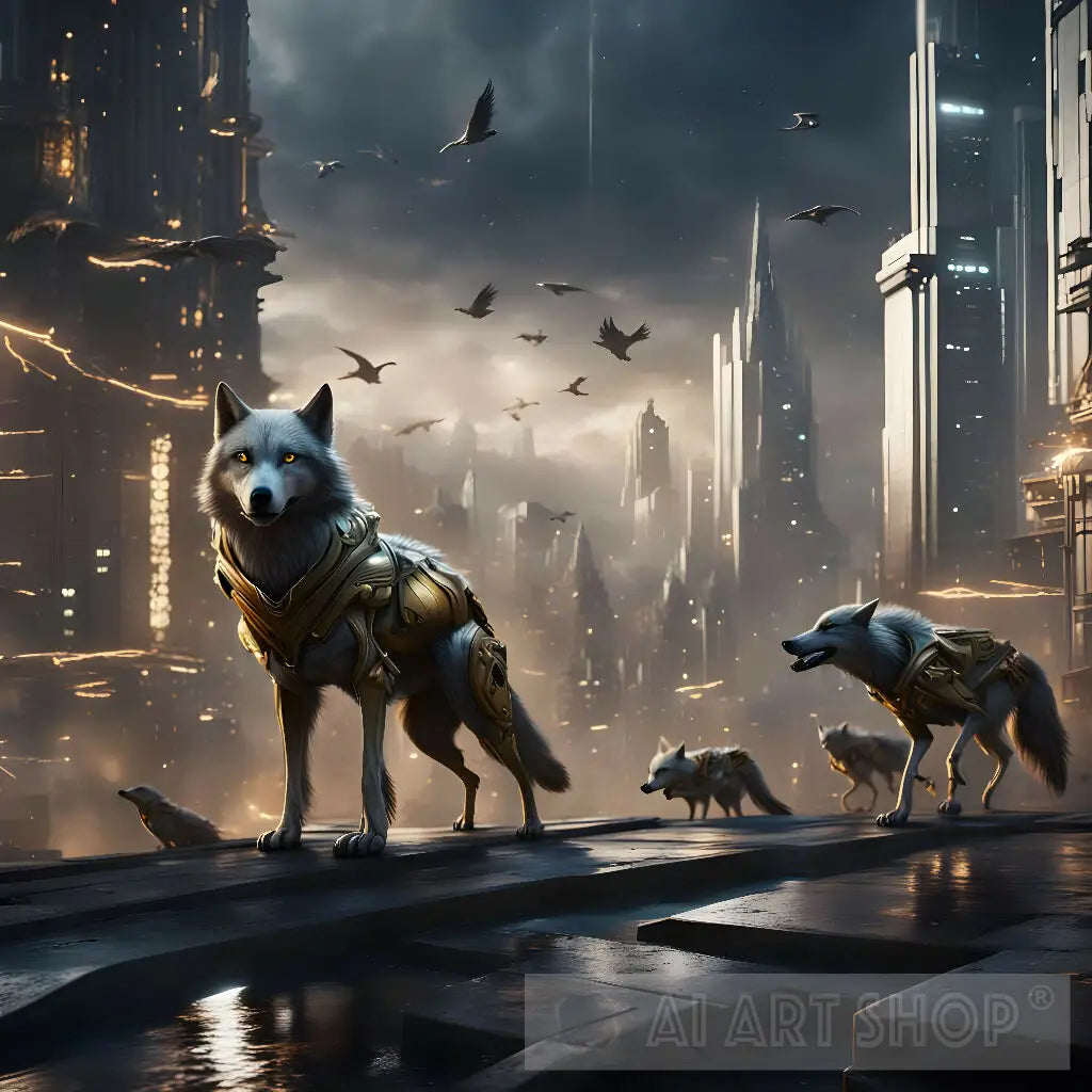 futuristic a.i generated image of galatic wolves living in space in 2080