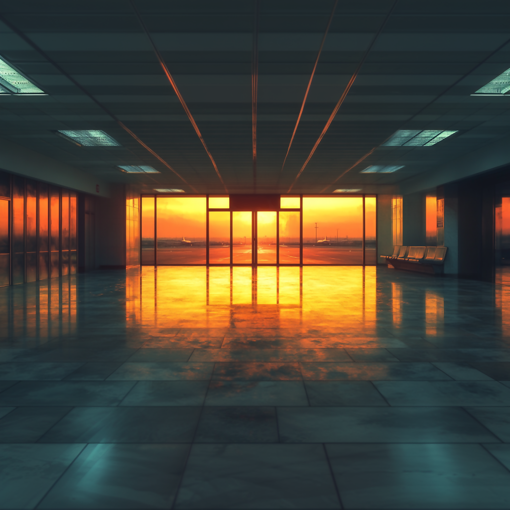 Every empty seat tells a story. Every reflection on the polished floor whispers of journeys untaken, connections missed, and those profound moments of solitude that exist only in the spaces between destinations. This isn't just abandoned terminal art, it's the visual poetry of modern nomadism, captured in that sacred hour when day surrenders to night.