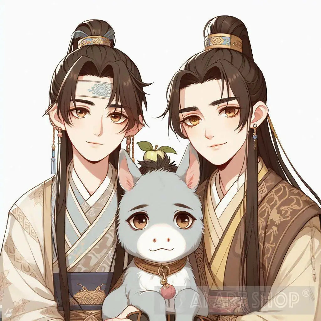 Gay Ancient Chinese Danmei Couple with Baby Donkey