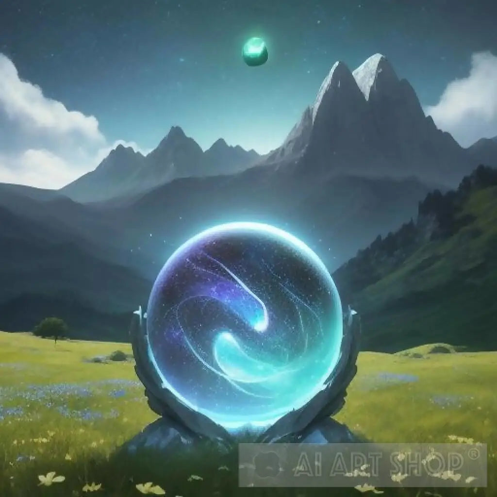 A striking scene where a dazzling gemstone takes center stage against the backdrop of a towering mountain.