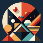 "Geometric Harmony" is a vibrant and dynamic AI-generated abstract artwork that explores the interplay of geometric shapes and bold colors. This piece features a striking combination of circles, triangles, and rectangles in warm hues of orange, red, and teal, set against a deep navy background. The composition is balanced yet energetic, creating a visual rhythm that draws the viewer's eye across the canvas. Ideal for modern spaces seeking a pop of color and contemporary design.