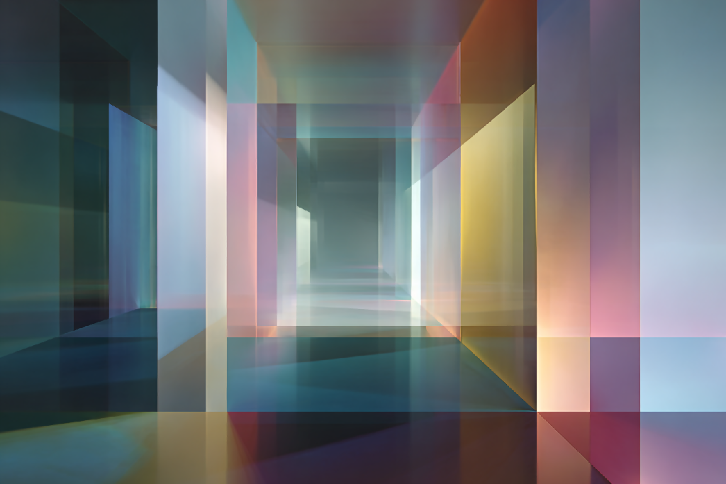 A series of abstract compositions exploring the relationship between form, color, and balance. Through geometric structures, layered transparencies, and chromatic gradients, each piece invites quiet contemplation. The series blends architectural precision with organic textures, creating a visual space where silence takes shape.