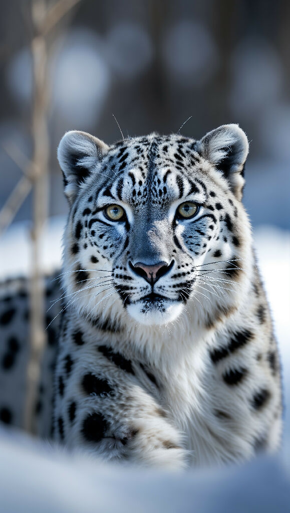 Step into the breathtaking wilderness of the Himalayas with this stunning AI-generated artwork featuring a snow leopard in its natural habitat. Known as the "ghost of the mountains," this elusive predator is captured in exquisite detail, blending power and grace against the rugged, snow-covered peaks. The piercing gaze, thick fur, and mysterious aura of the snow leopard make this piece a true masterpiece of nature's beauty.