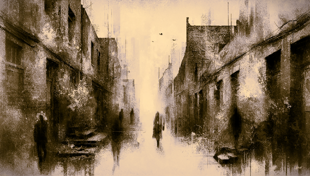 In the heart Lies a spectral secret, a place called Ghost Town.Streets whisper tales, in hues of profound Black and white,Echoes of life past, in every crack and crown.Windows, vacant eyes, in sorrow they drown,Time's cruel artistry, in decay is renown.Yet in this desolation, beauty wears the gown,A haunting masterpiece, this painting of Ghost Town.