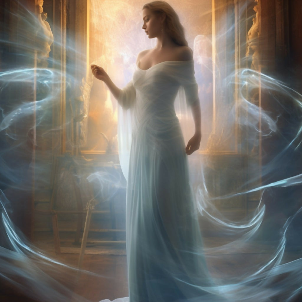 This AI-generated artwork blends spiritual energy, fantasy, and surreal elegance.