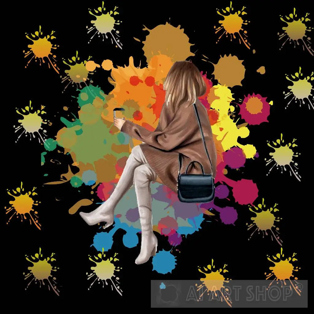 The "Girl With Bag Drinking Coffee" wall painting captures a moment of contemporary urban life with a blend of elegance and simplicity. In this scene, a young woman is depicted with a stylish bag slung over her shoulder, savoring a quiet moment with a cup of coffee. The artist skillfully conveys a sense of modernity and relatability in this everyday tableau.