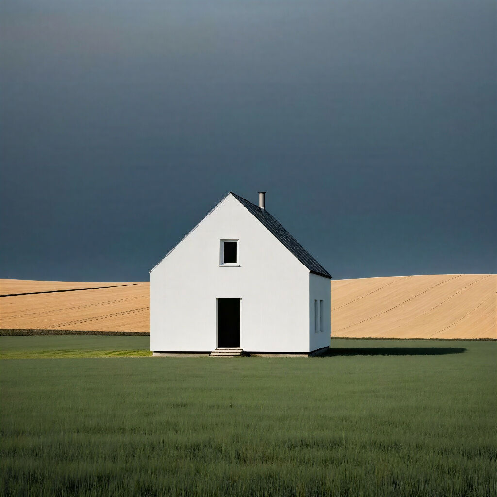 "Given Shelter" is a visual meditation on the concept of sanctuary. Inspired by the tension between a vast, darkening sky and the stark purity of a single white home, this piece offers a quiet answer to the chaos of the natural world. It is a study in architectural minimalism and the profound human need for a place to stand firm.