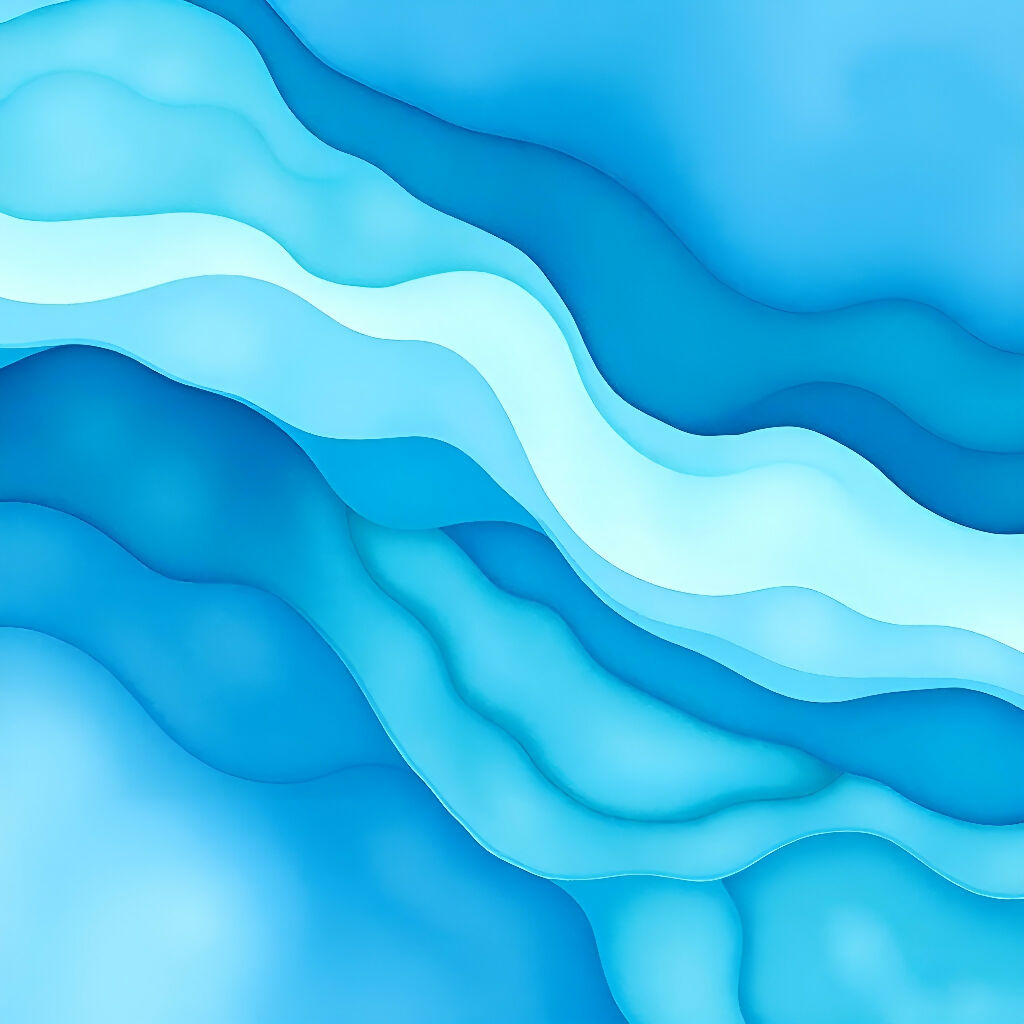 - Smooth, undulating abstract forms in multiple shades of blue