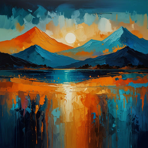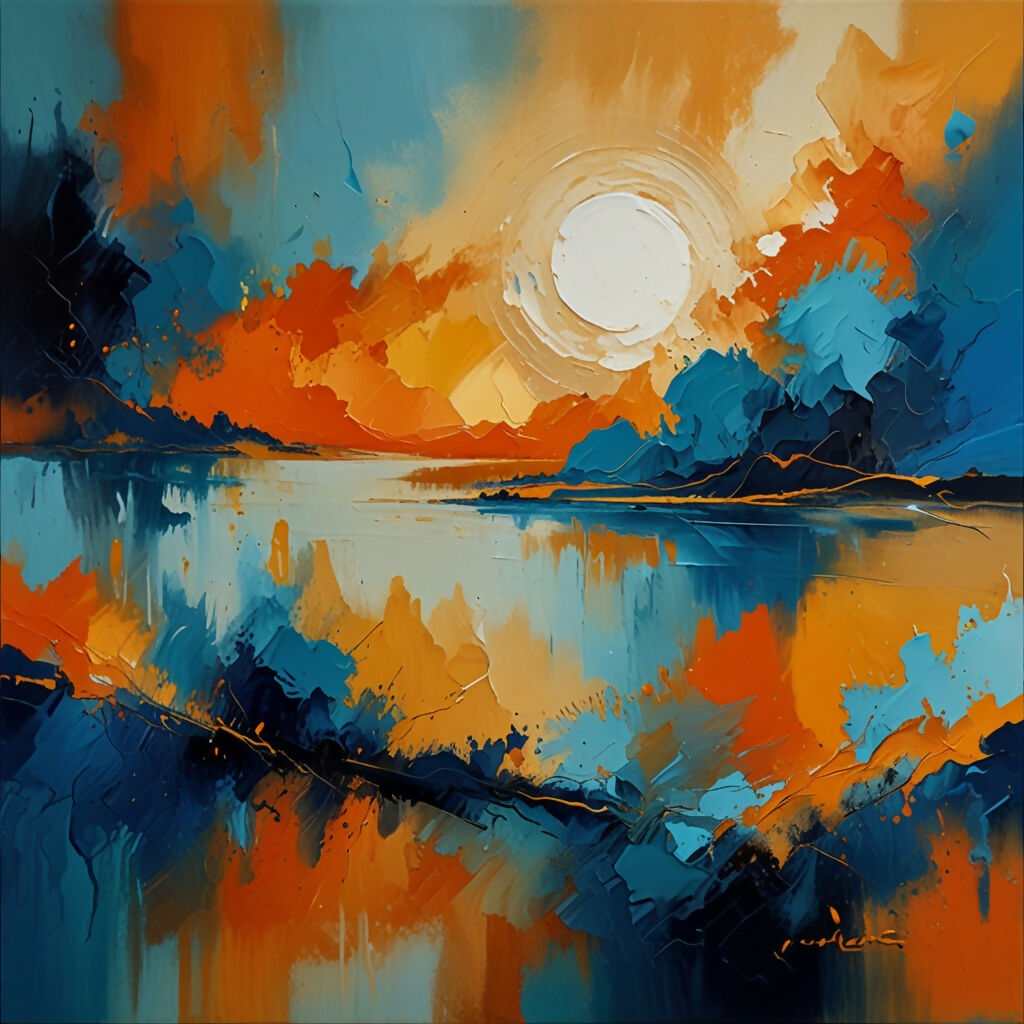 Step into a world where colors dance and shapes flow freely—Golden Horizons invites you on a mesmerizing journey through an abstract landscape alive with vibrant blues, fiery oranges, and shimmering golds. This contemporary expressionist masterpiece captures the essence of light and movement, blending fluid geometric forms with the rich texture of oil paint. Perfectly balanced between warmth and elegance, this painting transforms any space into a sanctuary of creativity and inspiration. Let Golden Horizons brighten your surroundings and spark your imagination every day.
