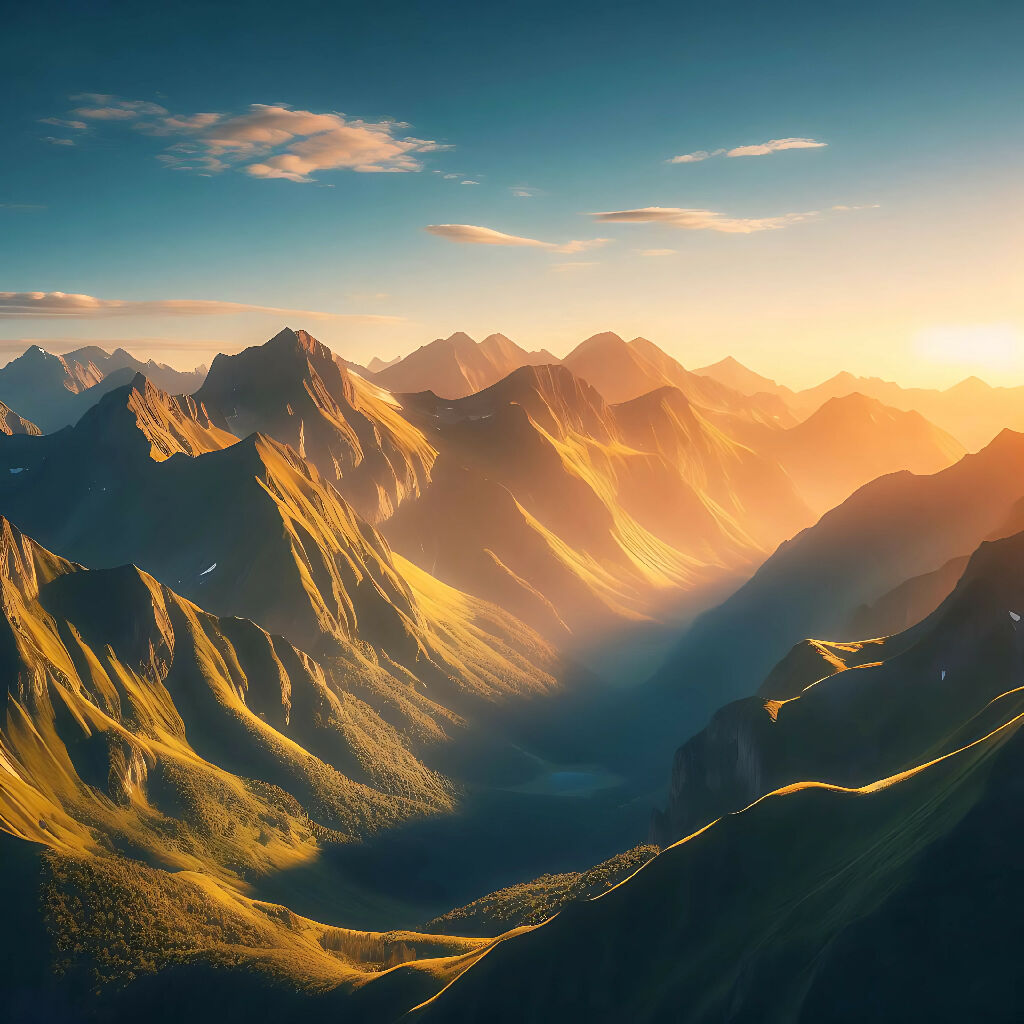 Golden Hour on a Mountain Ridge As the day exhales its final breath, the sun spills molten gold along the jagged ridges of the highlands. Rocks shimmer in hues of amber and copper, catching the light like forgotten treasure. Long shadows stretch across the peaks, dancing slowly over the quartz-laced slopes. The air hums with stillness, and the sky softens into a canvas of light and hush. In this sacred hour, time itself seems to pause—caught between the warmth of day and the hush of night.