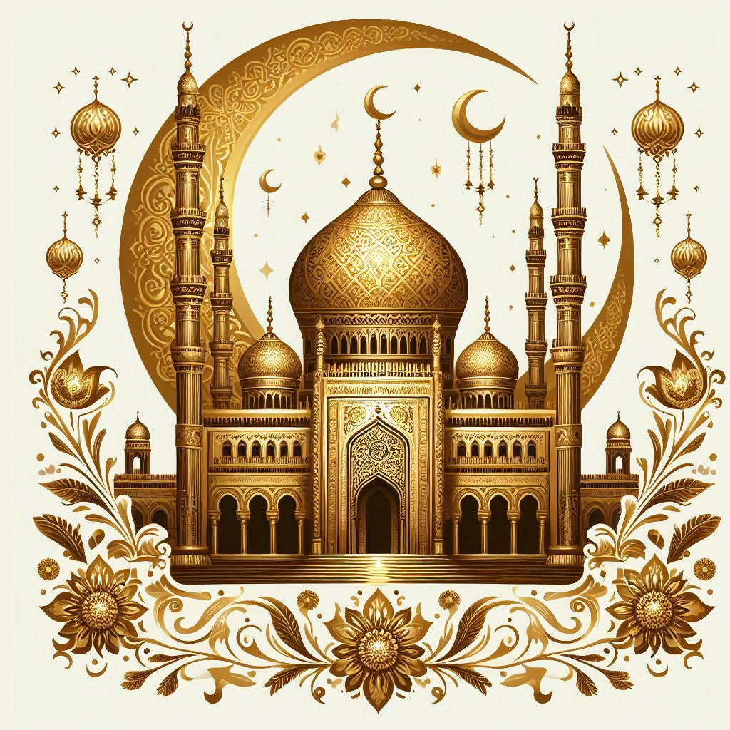 Ramadan kareem islamic decoration Golden Masjid of Mosque.