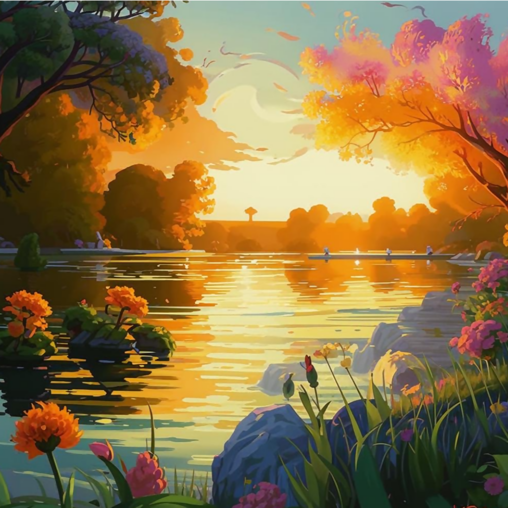 Immerse yourself in the breathtaking beauty of nature with ‘Golden Serenity.’ This AI-generated digital painting captures a mesmerizing sunset over a peaceful river, surrounded by lush greenery and blooming flowers. The impressionist-inspired strokes and warm golden hues create a dreamlike, tranquil atmosphere, perfect for adding a touch of serenity to any space. Ideal for home decor, office walls, or art enthusiasts who appreciate the harmony of colors and nature's beauty. Available as a high-resolution digital file for premium-quality prints.