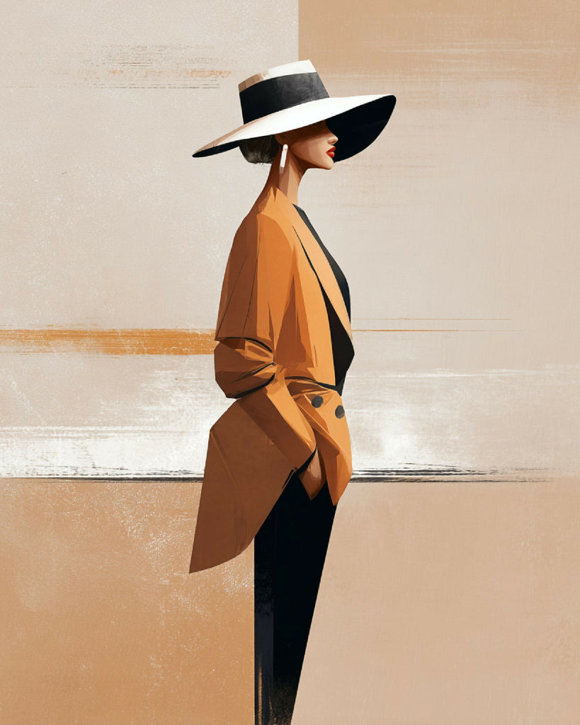 “Golden Silence” is a serene AI-generated fashion artwork featuring a faceless woman in warm, neutral tones. With minimalist elegance and timeless posture, this piece adds depth, calm, and refined style to any modern space.