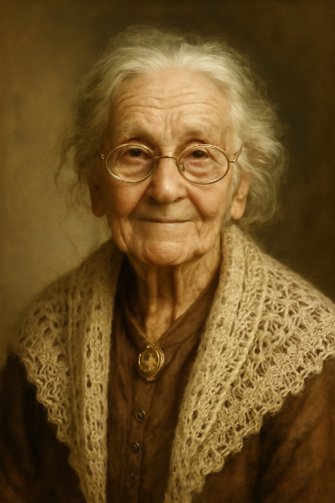 A heartwarming and timeless portrait of a grandmother in vintage style. This image captures wisdom and warmth, making it a perfect addition to any collection of family memories or art pieces.