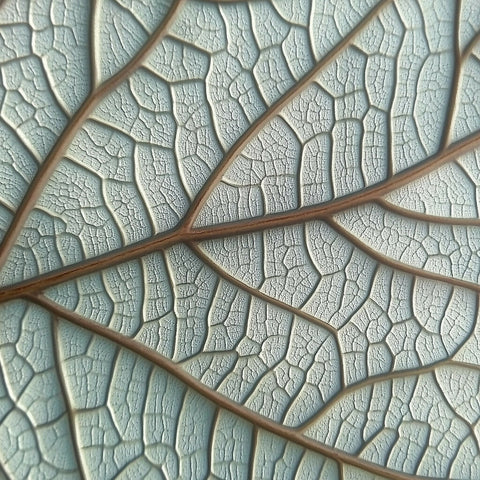 Nature AI art closeup of the underside of a green leaf showing its veins.
