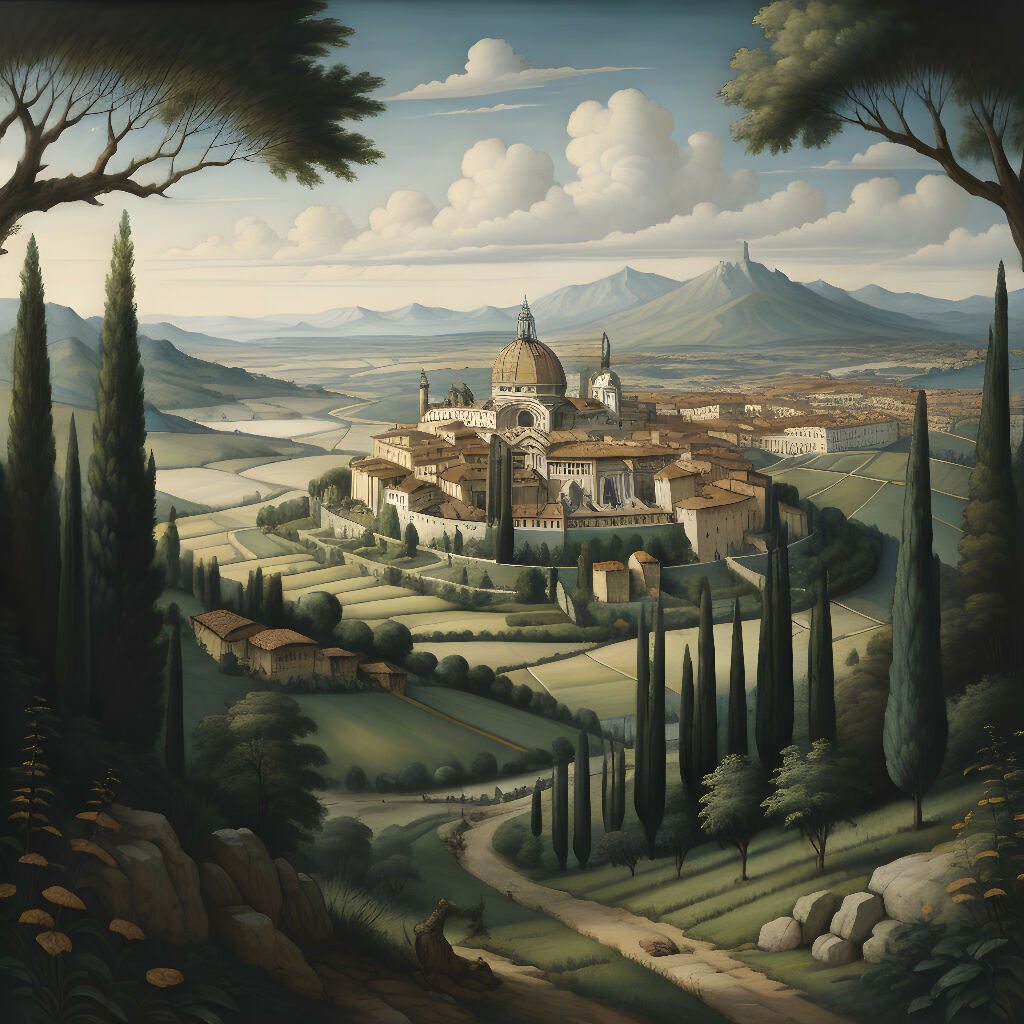 [no river in this art piece]  The artwork captures the picturesque charm of the European Czech river city with its historic architecture and scenic riverbanks.  [option two from "city by the river"]