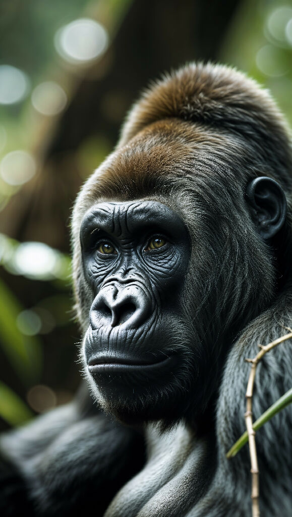 Step into the heart of the jungle with this breathtaking AI-generated artwork featuring a powerful gorilla in its lush forest habitat. Capturing the strength, wisdom, and untamed beauty of one of nature’s most awe-inspiring creatures, this masterpiece showcases intricate details—from the gorilla’s deep, soulful eyes to the rich textures of the verdant rainforest.