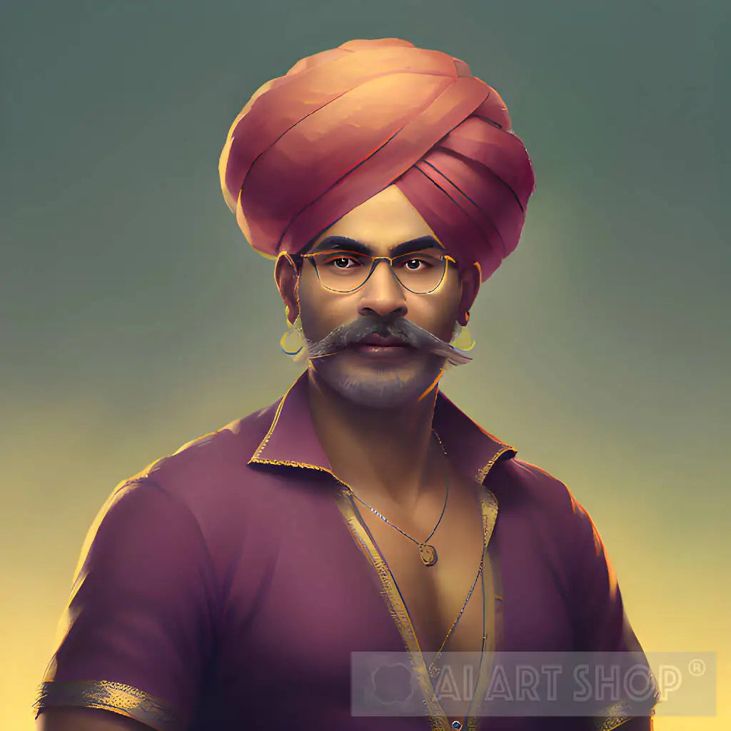 Looking for an eye-catching image that captures the essence of Gujrathi culture? Look no further than this stunning digital photograph of a Gujrathi man wearing a turban and earrings!